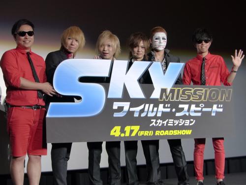 エアバンド「ゴールデンボンバー」が9日、都内で行われた映画「ワイルド・スピード スカイミッション」(17日公開)の試写会に出席した。