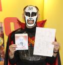 「ベイマックス MovieNEX」発売記念 鉄拳“パラパラ漫画”原画展開催記念スペシャルトークショーで、ディズニー・スタジオでプレゼントされた似顔絵を自慢する鉄拳