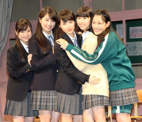 舞台「幕が上がる」初日開幕直前会見&公開ゲネプロに出席したももいろクローバーZ。(左から)有安杏果、佐々木彩夏、百田夏菜子、玉井詩織、高城れに Photo by スポニチ ももクロ初舞台に緊張 百田夏菜子「半分ぐらいのところに壁が…」 ギャラリーで見る この記事のフォト 2015年04月30日の画像一覧 もっと見る 2015年04月30日の画像をもっと見る