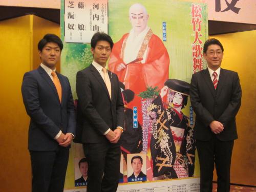 「松竹大歌舞伎」の製作発表に出席した(左から)中村国生、中村児太郎、中村橋之助
