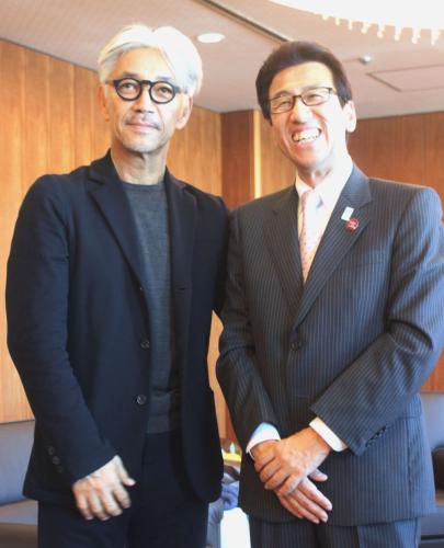 中咽頭がんと診断され、ゲストディレクターを務めた「札幌国際芸術祭2014」で予定したコンサートに出演できなかった音楽家坂本龍一(63)が29日、札幌市の秋元克広市長を表敬訪問し「順調に回復しています」と病状を報告した。