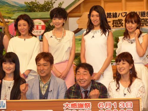 バス路線の旅の魅力を語る(下段左から)伊藤かずえ、太川陽介、蛭子能収、森尾由美、(上段左から)芳本美代子、遠藤久美子、森下千里、さとう珠緒