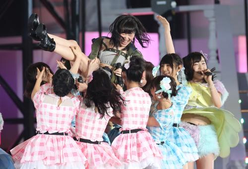 約2万8000人の観衆が詰めかけたコンサートの冒頭、新選抜メンバー16人がステージに登場。指原はその中央でマイクを握り「あらためて喜びが込み上げてくる。皆さんのおかげです」と頭を下げた。史上最多19万4049票を得て圧勝。最後の総選挙を終えた総監督の高橋みなみ(24)も「化け物だよ」と白旗を揚げた。