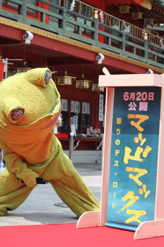 イベントには劇中に登場する謎のゆるキャラのKAERUくんも出席、「KAERUくんの演舞占い」を行った。しかし、同映画の大入りを予言するはずが、間違えて「マッドマックス」の告知をしてしまい、土下座して謝罪する事態となった。