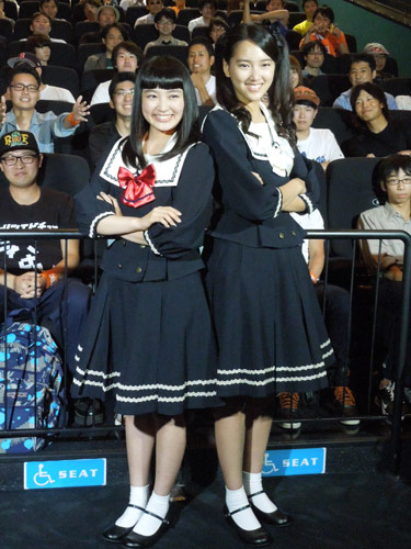 アイドルユニット「私立恵比寿中学」の柏木ひなた(16)主演の映画「脳漿炸裂ガール」(監督アベユーイチ、7月25日公開)の冒頭試写会が大阪市内で行われ、柏木と共演の竹富聖花(20)が舞台あいさつを行った。