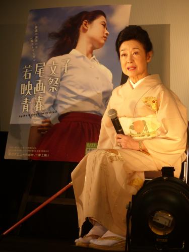 「何十年ぶりかしらね」という久々の舞台あいさつ。転んで腰を痛めたそうで、つえの助けを借りての登壇だったが、満員の客席を見て笑顔をみせた。59年公開の「浮草」で小津安二郎監督と1本だけ仕事をしたが、「すてきで、こういう人のお嫁さんになりたいと思いました」と秘話も披露した。