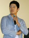 この日は、特別にあつらえた金箔(きんぱく)張りの和太鼓(200万円相当)の拍子に乗り、約20年ぶりに発売した本格シングル「本日は晴天なり」を初披露。また、20年東京五輪で使用される屋根付き新国立競技場の総工費が膨らみ、都が負担するかどうかが問題となっていることを絡めてPR。舛添要一都知事に向けて「“晴天なり”の歌詞を聴いていただけたら雨の心配はない。屋根を造らないで済む。機会があれば直接お渡ししたい」と話した。