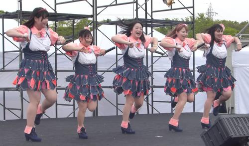 1月のデビューイベントで熱唱する「Pottya」(左から)塚田恵未、大木梨渚、横川麻衣、犬童舞子、大橋ミチ子