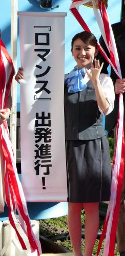 映画「ロマンス」のイベントにロマンスカーのアテンダントの制服姿で登場した大島優子