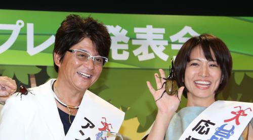 18日に初日を迎える国際土壌年2015記念「大昆虫展in東京スカイツリータウン」(スポーツニッポン新聞社主催)のプレス発表会が17日、開催場所の東京スカイツリータウン・ソラマチ5階「スペース634」で行われ、俳優の哀川翔(54)がイベントのアンバサダーを、フリーアナウンサーの赤江珠緒(40)が応援大使に就任した。