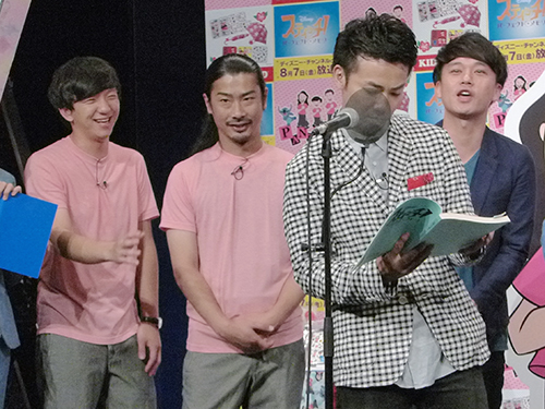 16日に芥川賞を受賞したお笑いコンビ「ピース」の又吉直樹(35)の相方、綾部祐二(37)と、又吉と同居している「パンサー」向井慧(29)と「ジューシーズ」児玉智洋(35)が20日、都内でディズニーキャラクター「スティッチ」との限定コラボグッズ発売記念イベントに出席し、受賞後初めて又吉について語った。