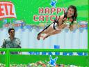 緑色のチューブトップ水着姿で、柔道家篠原信一(42)が操作する“人間UFOキャッチャー”に挑戦。クレーンに宙吊(づ)りになって自慢のGカップの谷間を披露すると、つかみ取った箱は自転車の当たり券入りのお宝。愛用の自転車を「3カ月前に盗まれた。サドルが欲しかったのかな」と明かし、「ハッピー!」と本気で喜んだ。
