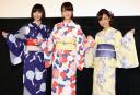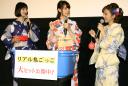 タレントのトリンドル玲奈(23)、篠田麻里子(29)、女優の真野恵里菜(24)が25日、主演映画「リアル鬼ごっこ」が公開中の東京・新宿ピカデリーで「夏祭りイベント」と題した舞台あいさつを行った。