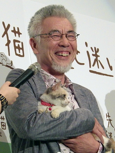 5年ぶりの主演映画「先生と迷い猫」の完成披露イベントに出席したイッセー尾形と“共演”の猫・ドロップ