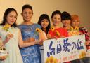 映画「向日葵の丘 1983年・夏」初日舞台あいさつに役柄のまま、金髪姿で登場した藤田朋子