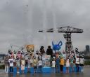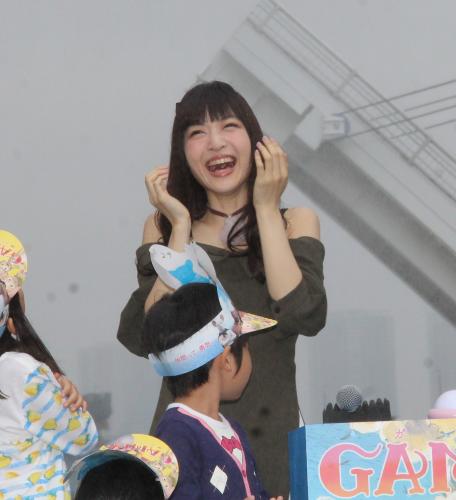 残暑を吹き飛ばそうと企画されたものだったが、この日は朝から生憎の雨。東京湾を背にした屋外ステージで、ウォーターキャノン砲がド派手に地上30メートルまで水柱を吹き上げて激しく水を降らせるも、参加した30人の子どもたちからは思わず「寒い」の声が上がった。これにはガンバ役の梶裕貴(29)も「晴れてさえいれば…」と苦笑い。ただ、神田は「こんな天気だけどテンション上がる!」と大はしゃぎで、満面の笑みで明るく盛り上げた。