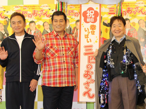松平健(61)、西郷輝彦(68)、中村梅雀(59)の主演舞台「三匹のおっさん」が4日、東京・日本橋浜町の明治座で初日を迎えた。
