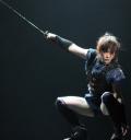 刺客として育てられた少女・あずみが激動の幕末に巻き込まれていくアクション活劇で、2時間の公演中に披露する殺陣は約1000パターン。述べ350人を斬る設定で、「すごく多いけれど、周りの方がサポートしてくれるので信じてやっています。人を斬るのは気持ちいいですね」と表情を緩めた。