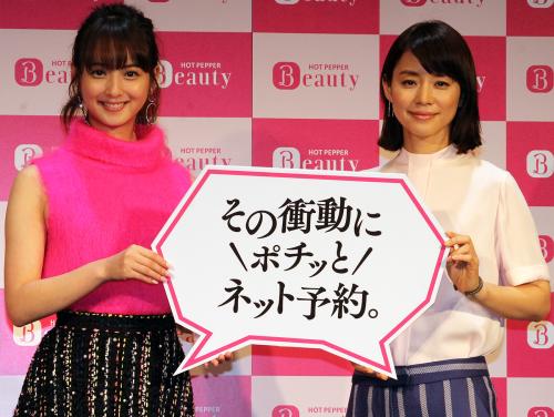 「ホットペッパービューティー」の新CM発表に出席した佐々木希(左)と石田ゆり子