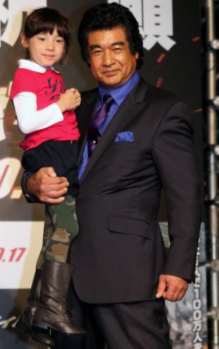 映画「サバイバー」のイベントに出演した藤岡弘、と人気子役のエヴァ