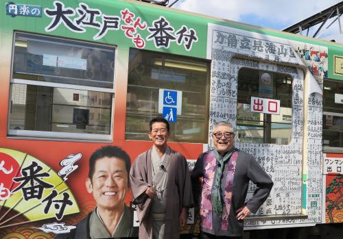司会を務めるBS朝日「円楽の大江戸なんでも番付」(金曜後9・00)では、9月から番組のロゴや円楽の顔がプリントされたラッピングカーを都電荒川線で走行。11月6日の放送分では、初めて屋外ロケへ出発、番組レギュラーの中尾彬(73)とともに円楽号に乗車した。