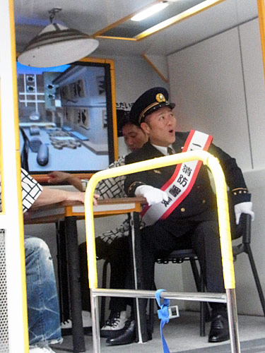 なんばグランド花月前での任命式では、「乾燥していますので、火事に気をつけて。一人一人の気持ちの持ち方次第です」とあいさつ。その後は地震体験車で震度7の地震を体験して驚がくの表情を浮かべ、水消火器による消火体験も行った。