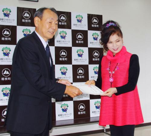 神奈川県箱根町は13日、歌手の八代亜紀(65)に町の親善大使を委嘱した。
