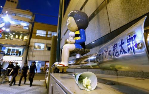水木さん自宅のある調布 書店の著作コーナーに張り紙「ご冥福を」