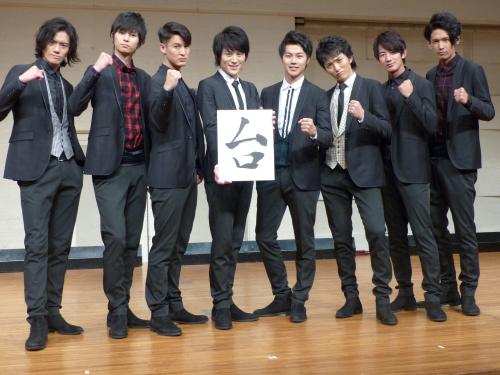 来年4月にデビュー2周年記念ライブを東京・台場のZeppダイバーシティ東京で行うことも発表。来年の目標として漢字一文字で「台」と掲げ、佐脇慧一(25)は「1つは、音楽界で台風の目になりたい。もう1つは、台場での2周年ライブを成功させたいから」と説明した。