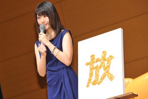 女優の有村架純(22)が25日、都内で行われた「亀田の柿の種」発売50周年記念記者発表会に出席した。