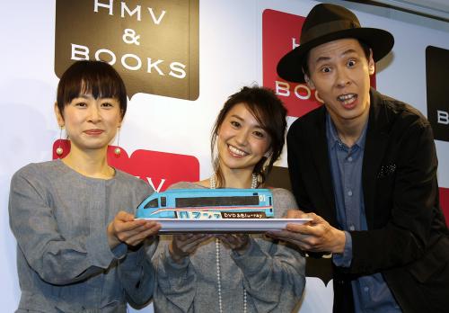 大島演じる小田急ロマンスカーの車内販売員と、万引きをきっかけに知り合った大倉孝二扮する自称映画プロデューサーとの珍道中を描くロードムービー。バレンタインデーを前に、大島とタナダユキ監督(40)はロマンスカーの形をしたチョコケーキを贈ったが、大倉は「うれしいけれど、まずそう」とポツリ。大島は「ひどい。今年最初にあげたのに」と悲しがったが、「だって食べ物の色じゃないだろう」と抵抗し、笑いを誘った。