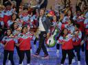 次々と色が変わるカラフルなステージに立ったボーカルのクリス・マーティンがパフォーマンスを展開する中、第48回大会のハーフタイムショーに出演したブルーノ・マーズがサプライズで登場。これだけに終わらず、第38回大会で国歌斉唱の大役を務めたビヨンセも姿を現し、迫力の歌声で会場を盛り上げた。