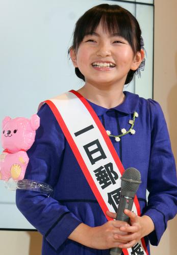 NHK朝の連続テレビ小説「あさが来た」に出演中の子役・鈴木梨央(11)が13日、東京中央郵便局(東京・丸の内)の1日局長を務めた。