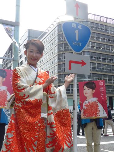 全国各地の国道の標識を撮影するのが趣味で、この日は東京・日本橋の国道1号の標識に「演歌界のNo・1になりたい」と願掛け。国道は507号まであるが「まだ64枚(の標識)しか撮れていないから先は長い。いつか8枚の標識が並ぶ新潟の本町交差点に行ってみたい」とマニアックな一面をのぞかせた。所属事務所の後輩で、不倫騒動が原因で休業したベッキー(31)については「仲間やファンは待っている」とエール。7月10日に25周年記念公演を東京・王子の北とぴあで開催する。