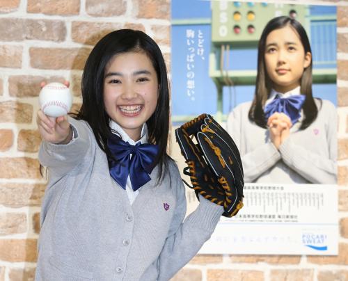 両手を組んで願いを込める制服姿のポスター8万枚が製作され、全国各地の交通機関などに掲出されていく。大阪府内の中学を今月卒業予定で、4月からは球児たちと同じ高校生。出場32校の選手たちへ「悔いのないプレーで、高校生活の最高の思い出をつくってください」とエールを送った。この日の会見に向けて父親と特訓してきたキャッチボールの腕前も披露。投球も捕球もミスはゼロだったが、「練習ではボールを顔面に受けちゃったんです」と恥ずかしそうに明かした。