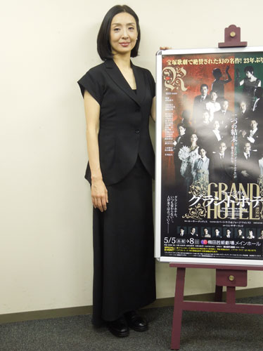 女優・草刈民代(50)が11日、大阪市内で出演ミュージカル「グランドホテル」(5月5~8日、梅田芸術劇場)の取材会を行い、東日本大震災の犠牲者や被災者に思いをはせた。