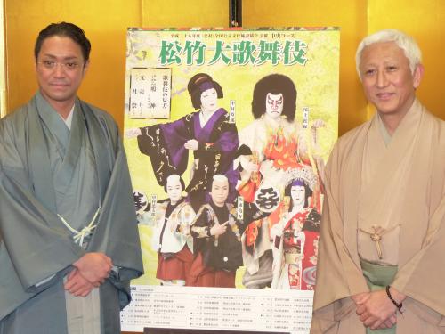 歌舞伎俳優の中村時蔵(60)尾上松緑(41)が29日、都内で「松竹大歌舞伎」の製作発表を行った。