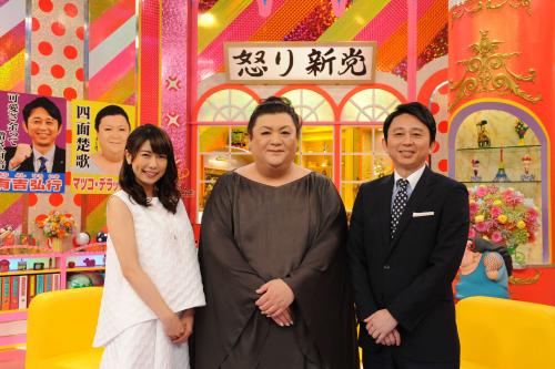 「マツコ&有吉 怒り新党」に出演する(左から)青山愛アナウンサー、マツコ・デラックス、有吉弘行(C)テレビ朝日