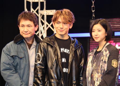 製作発表会見に登場した(左から)木下ほうか、NAOTO、黒島結菜