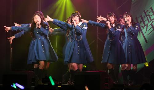 新人としては異例の約1万人を集め熱気ムンムン。ライブ冒頭で菅井友香(20)が熊本、大分で発生している地震に触れ「被害に遭われた皆さまにお見舞い申し上げます。出入り口に募金箱を設置させていただきました」と協力を呼びかけた。センターの平手友梨奈(14)は同曲がヒットしていることについて「スタッフさんや先輩の乃木坂さんのおかげ」と謙虚に語った。