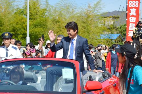 戦国武将真田昌幸・幸村父子が蟄居した地として知られる和歌山県九度山町で8日、父子をしのぶ恒例の「真田まつり」が開かれた。NHK大河ドラマ「真田丸」で昌幸役を演じる俳優草刈正雄(63)が赤いオープンカーで武者行列に合流、歓声を浴びた。
