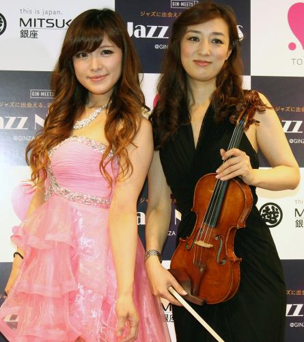 「立ち止まって、聴いてくれなければ始まらない。もともと露出好きなところがあるので」とビキニ姿でのピアノ演奏など、ジャズの普及に文字通り体を張っている。この日も、胸の谷間があらわになったセクシーなピンクのドレス姿で先輩バイオリニストの牧山純子(41)とセッション。5曲を披露した。