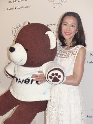 クマのぬいぐるみを抱いて笑顔の木村佳乃