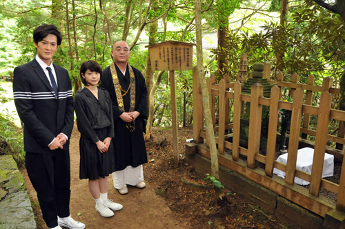 秀次演じる新納は「自刃の間は思っていたよりもずっと狭い空間。どういう思いで命を絶ったのかな…」と、自身が秀次として生きてきた数カ月と思いを重ねた。光臺院裏山の墓所では「僕が入るのもやっとの小さな墓所。こんな扱いをされなきゃダメだったのかな…。僕が演じて来た秀次はすごく明るくて、一生懸命頑張ってきたので、彼が亡くなった後に、こういう寂しい場所にひっそりと眠っていると思うと、すごく悲しい」と思わず涙があふれた。