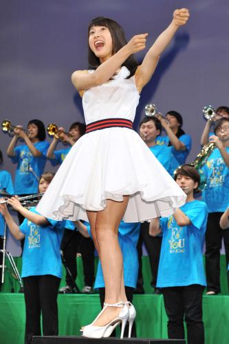 女優の土屋太鳳(21)が21日、都内で行われた映画「青空エール」(監督三木孝浩、8月20日公開)の完成披露舞台あいさつに、竹内涼真(23)、葉山奨之(20)らとともに登壇した。