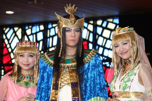 ミュージカル「王家の紋章」初日囲み取材に登場した(左から)新妻聖子、浦井健治、宮澤佐江