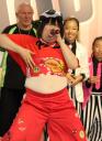 自前の水着姿を披露するAKB48の小嶋陽菜(左から2人目)。アンガールズ・田中が「着てほしい」とお願いした水着は果たして…。