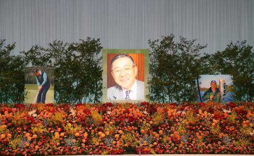 湿っぽい形にはならないようにと、“お花畑”をイメージし、ダリア、トルコキキョウ、バラ、ガーベラ、ユリなどのカラフルな6000本の花で彩った華やかな祭壇となった。遺影はいずれも喪主の妻寿々子さん(68)が選んだものだといい、中央には数年前に雑誌の対談で撮影したという穏やかな笑顔の巨泉さん。4、5年前、ニュージーランドで釣りをした際にマスを釣った時の巨泉さん、数年前に国内でゴルフを楽しんだ時の巨泉さんの3枚が並んだ。