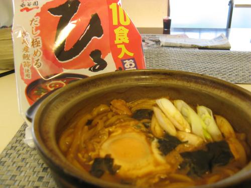 暇にあかして赤だしのインスタント味噌汁を使って味噌煮込みうどんのようなものを作ってみた。本家の足もとにも及ばないが、方向性は間違っていない。東海道本線に乗る予定が、間違って東北本線に乗っちゃった、にはならなかった。