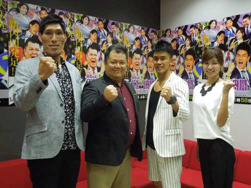 スポーツ界の向上を目指す「戦え!スポーツ内閣」の初回収録に挑んだ(左から)篠原信一、小杉竜一、武井壮、青木愛